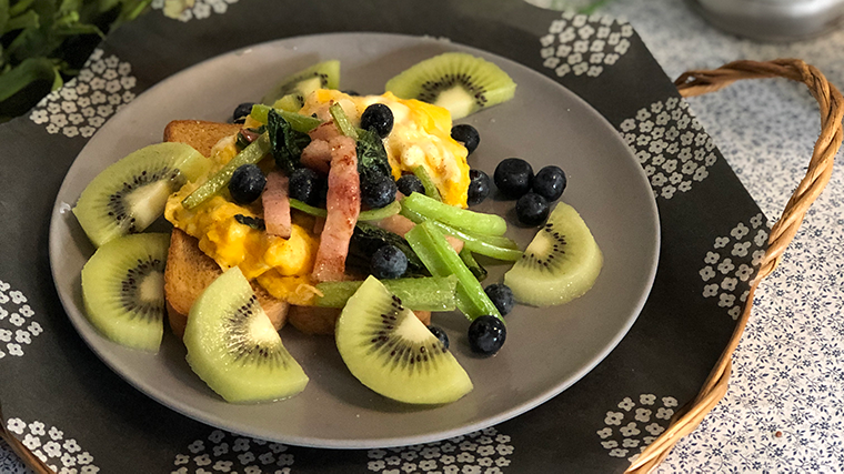 海老とアボカドとまんまる卵焼きのピリ辛オープンサンド