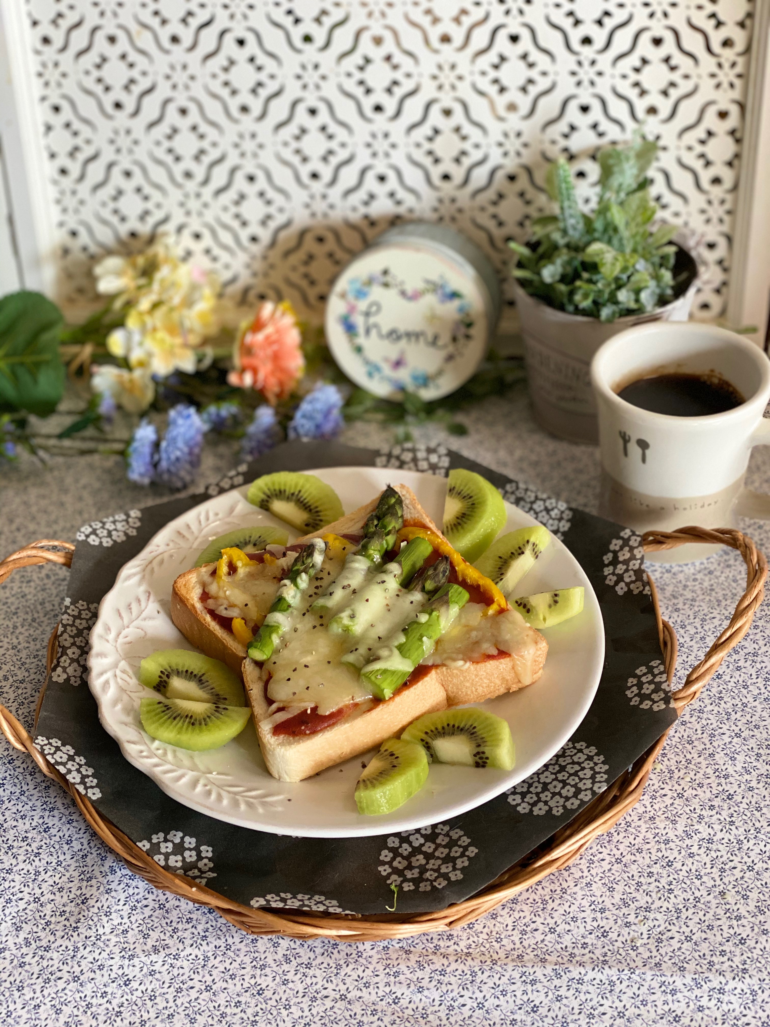 海老とアボカドとまんまる卵焼きのピリ辛オープンサンド