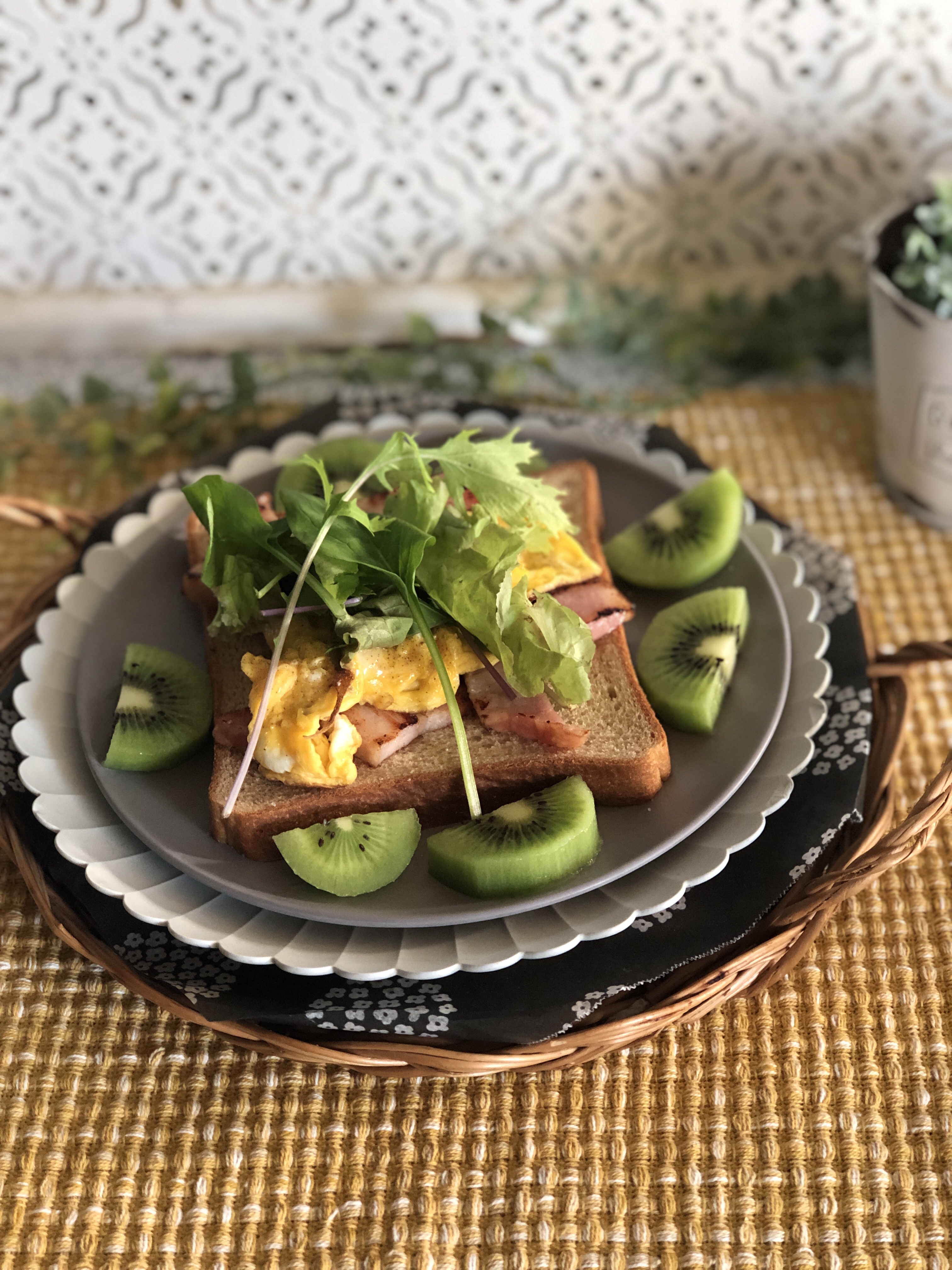海老とアボカドとまんまる卵焼きのピリ辛オープンサンド