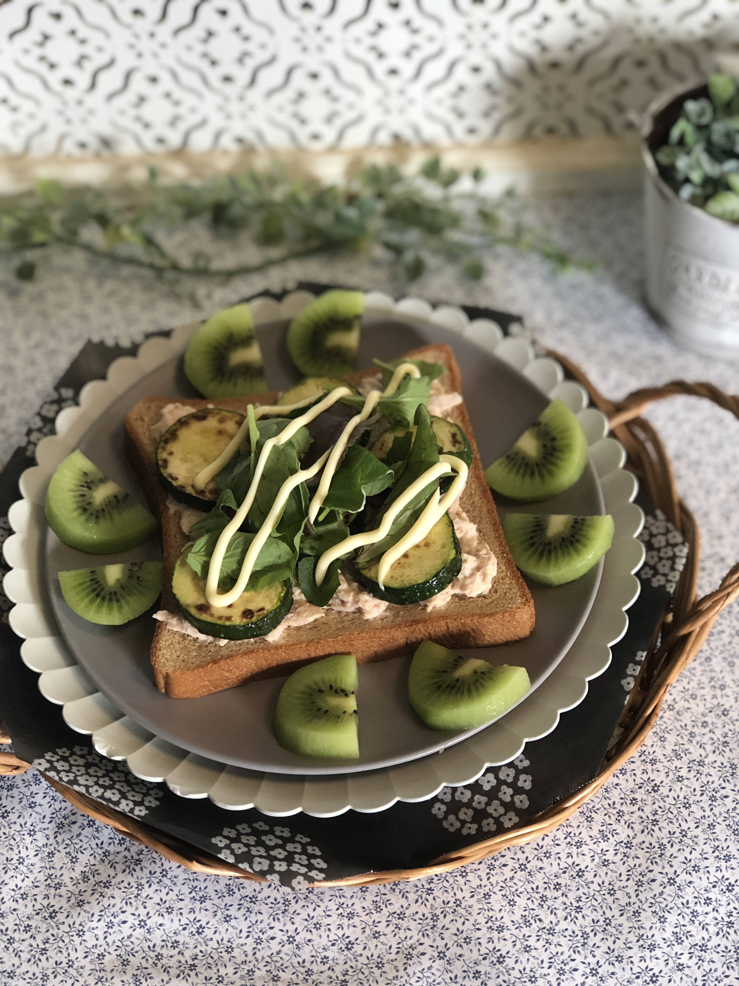 海老とアボカドとまんまる卵焼きのピリ辛オープンサンド